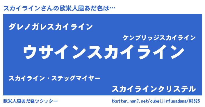 | 男性向けラノベタイトル風あだ名 | 『スカイラインの嫁は女の子じゃないと思った?』 |