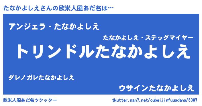 | 男性向けラノベタイトル風あだ名 | 『タナカヨシエスレイヤー』 |