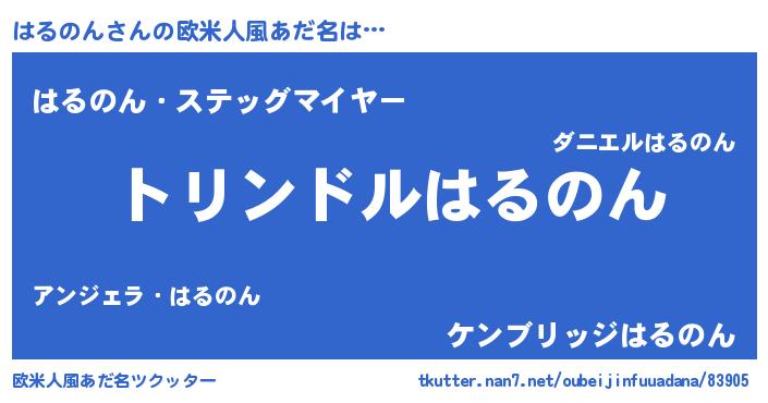 | 女子向けラノベタイトル風あだ名 | 『はるのんの玉の輿計画!』 |