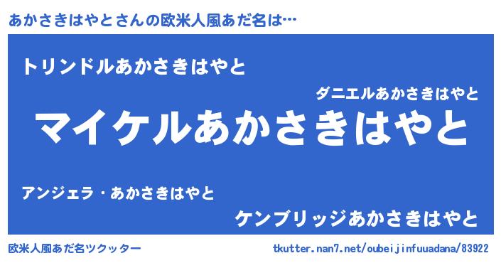 | 男性向けラノベタイトル風あだ名 | 『アカサキハヤトアートオンライン』 |
