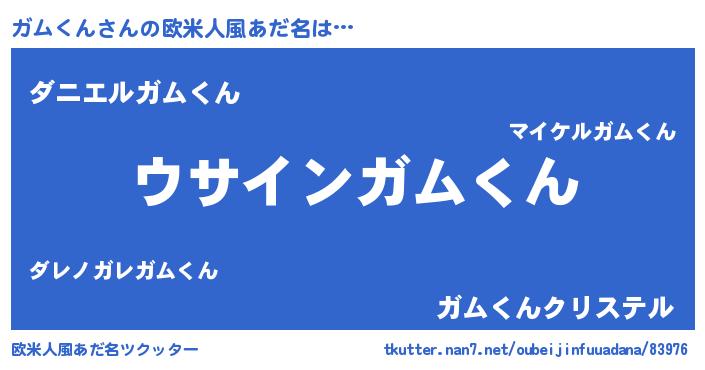 | 男性向けラノベタイトル風あだ名 | 『ガムくんの嫁は女の子じゃないと思った?』 |