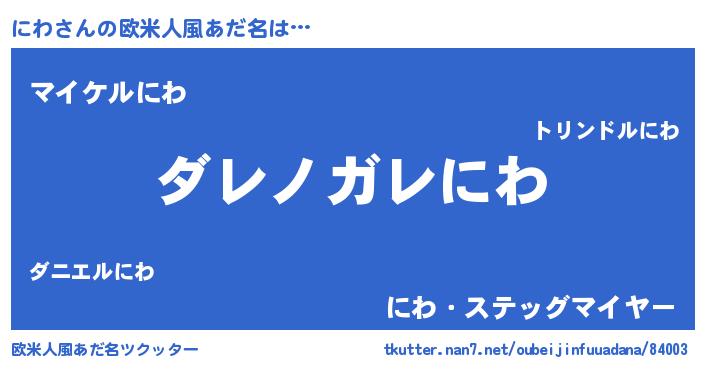 | 男性向けラノベタイトル風あだ名 | 『この素晴らしい世界ににわを!』 |