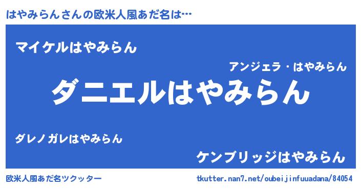 | 男性向けラノベタイトル風あだ名 | 『おまえをオタクにしてやるから、俺をはやみらんにしてくれ! 』 |