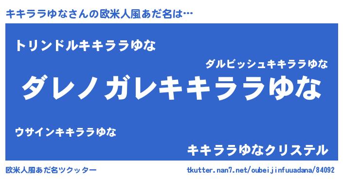 | 男性向けラノベタイトル風あだ名 | 『この素晴らしい世界にキキララゆなを!』 |