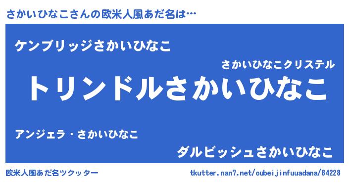 | 女子向けラノベタイトル風あだ名 | 『さかいひなこの玉の輿計画!』 |