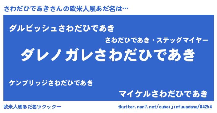 | 男性向けラノベタイトル風あだ名 | 『この素晴らしい世界にさわだひであきを!』 |