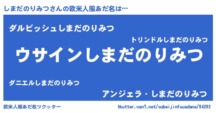 | 男性向けラノベタイトル風あだ名 | 『しまだのりみつの嫁は女の子じゃないと思った?』 |