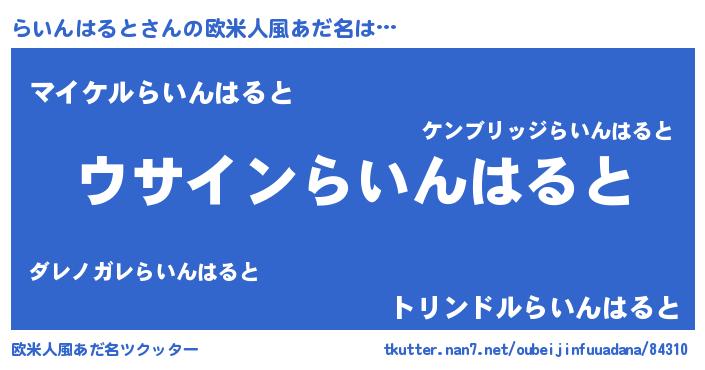 | 男性向けラノベタイトル風あだ名 | 『らいんはるとの嫁は女の子じゃないと思った?』 |