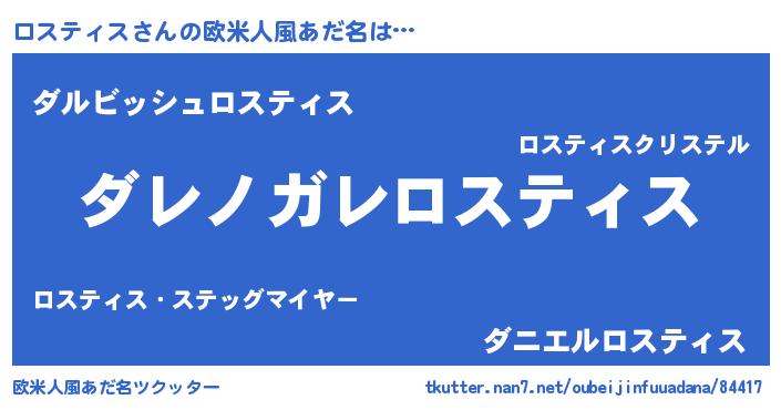 | 意味不明あだ名 | 『住所不定無職ロスティス(59歳)』 |