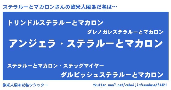 | 男性向けラノベタイトル風あだ名 | 『ステラルーとマカロンに滅ぼされるだけの簡単なお仕事です』 |