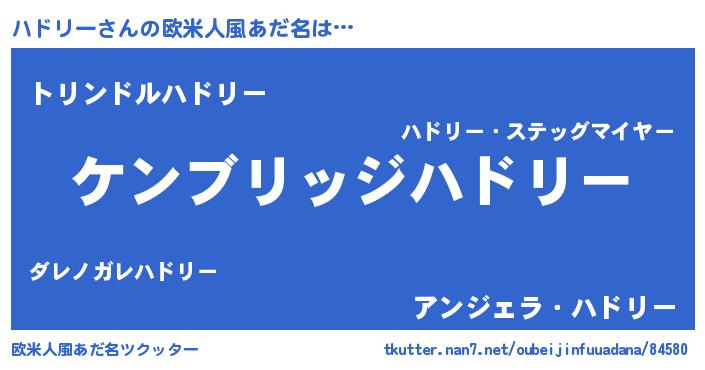| 男性向けラノベタイトル風あだ名 | 『Re:ハドリーから始める異世界生活』 |