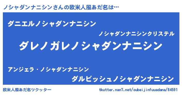 | 意味不明あだ名 | 『住所不定無職ノシャダンナニシン(47歳)』 |