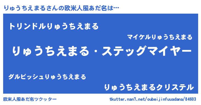 | 男性向けラノベタイトル風あだ名 | 『冴えないりゅうちえまるの育てかた』 |