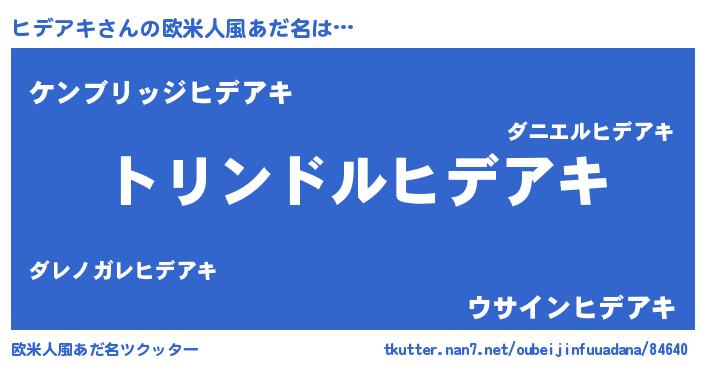 | 男性向けラノベタイトル風あだ名 | 『ヒデアキスレイヤー』 |