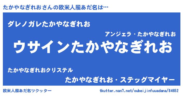 | 男性向けラノベタイトル風あだ名 | 『たかやなぎれおの嫁は女の子じゃないと思った?』 |