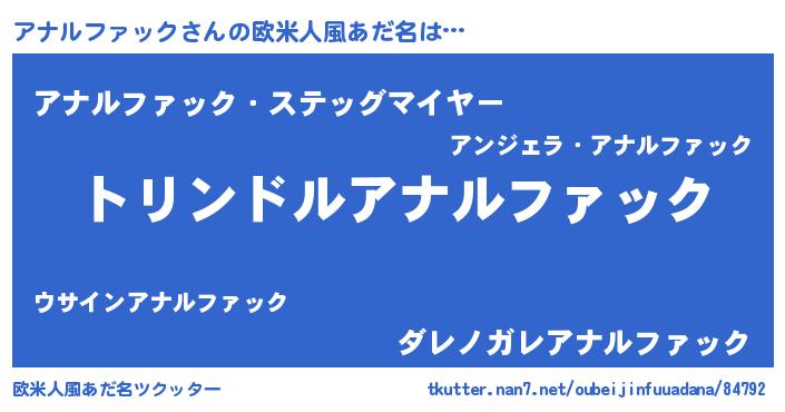 | 男性向けラノベタイトル風あだ名 | 『アナルファックスレイヤー』 |