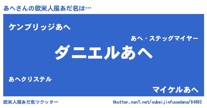 | ヒーロー風カッコイイあだ名 | 『慈愛の使者あへ』『最強戦士アヘ』 |