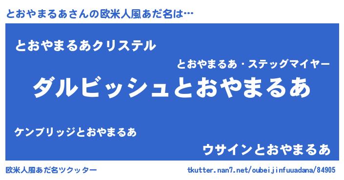 | 意味不明あだ名 | 『永久保存とおやまるあ』 |