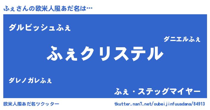 | 女子向けラノベタイトル風あだ名 | 『ふぇの雑貨屋さん』『死神ふぇの再婚』 |