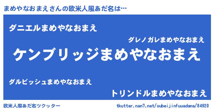 | 意味不明あだ名 | 『自称まめやなおまえ』 |