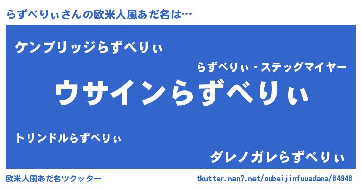 | 男性向けラノベタイトル風あだ名 | 『ダンジョンにらずべりぃを求めるのは間違っているだろうか』 |