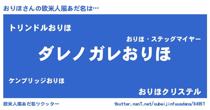 | 男性向けラノベタイトル風あだ名 | 『この素晴らしい世界におりほを!』 |
