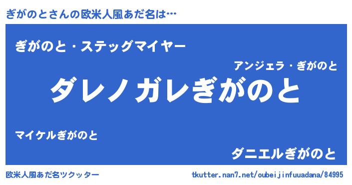 | 男性向けラノベタイトル風あだ名 | 『この素晴らしい世界にぎがのとを!』 |