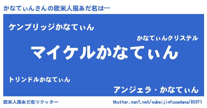 | ファンタジー風あだ名 | 『カナフェル』『ゼカナトゥ』 |
