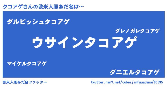 | 男性向けラノベタイトル風あだ名 | 『ダンジョンにタコアゲを求めるのは間違っているだろうか』 |