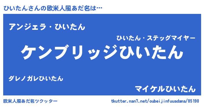 | 男性向けラノベタイトル風あだ名 | 『Re:ひいたんから始める異世界生活』 |