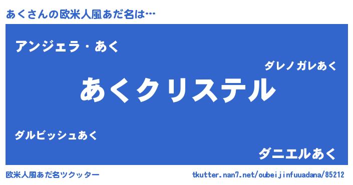 | 女子向けラノベタイトル風あだ名 | 『あくの雑貨屋さん』『死神あくの再婚』 |