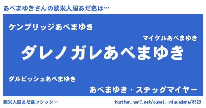 | 意味不明あだ名 | 『住所不定無職あべまゆき(5歳)』 |