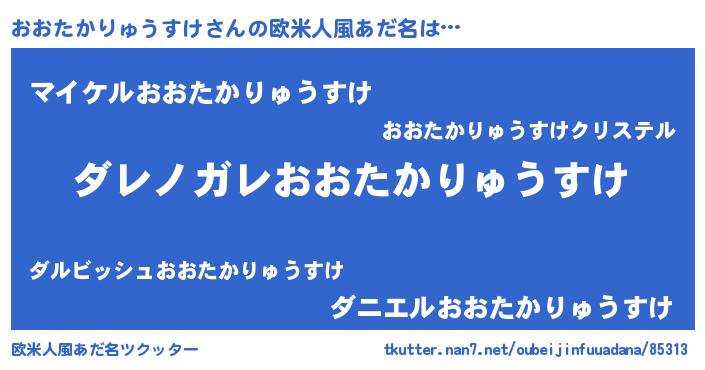 | 女子向けラノベタイトル風あだ名 | 『乙女ゲームの破滅フラグしかない悪役おおたかりゅうすけに転生してしまった…』 |