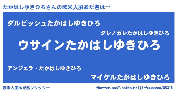 | 男性向けラノベタイトル風あだ名 | 『たかはしゆきひろの嫁は女の子じゃないと思った?』 |