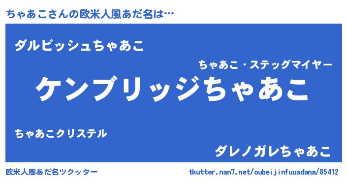 | 男性向けラノベタイトル風あだ名 | 『Re:ちゃあこから始める異世界生活』 |