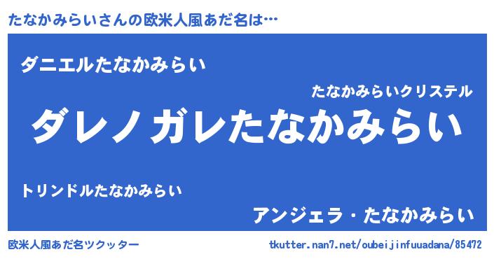 | 意味不明あだ名 | 『住所不定無職たなかみらい(89歳)』 |