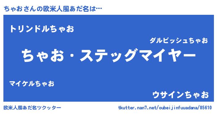 | ヒーロー風カッコイイあだ名 | 『魔戒騎士チャ』『ネオチャオ』 |