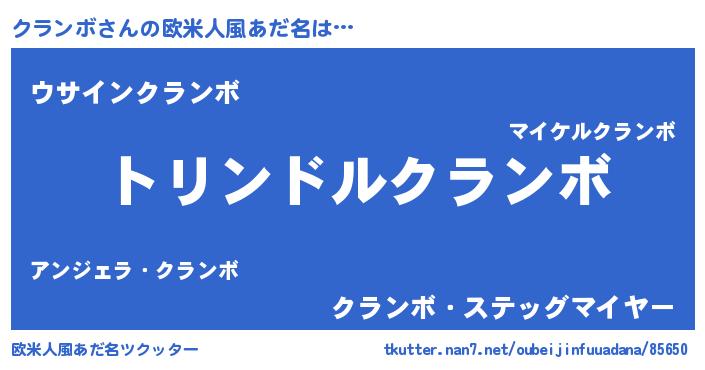 | 男性向けラノベタイトル風あだ名 | 『クランボ~年齢イコール彼女いない歴の魔法使い~』 |