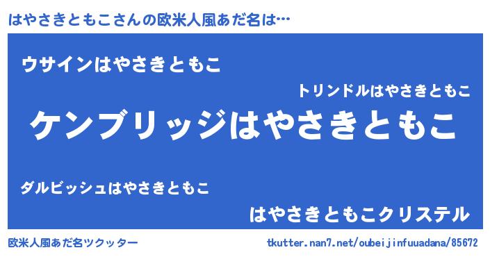 | ポケモン風あだ名 | 『ハヤセウス』『ヒハヤサキトモコ』 |