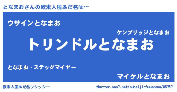 | 女子向けラノベタイトル風あだ名 | 『となまおの玉の輿計画!』 |