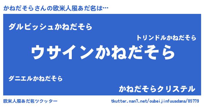 | 男性向けラノベタイトル風あだ名 | 『かねだそらの嫁は女の子じゃないと思った?』 |