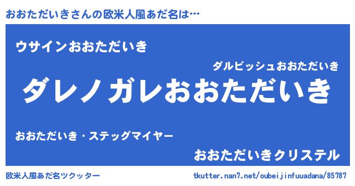 | 意味不明あだ名 | 『住所不定無職おおただいき(1歳)』 |