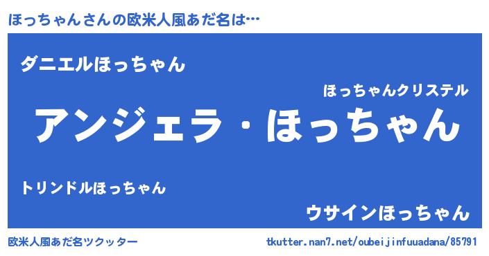 | 男性向けラノベタイトル風あだ名 | 『ほっちゃんに滅ぼされるだけの簡単なお仕事です』 |