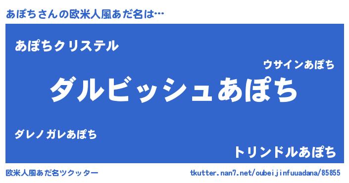 | ヒーロー風カッコイイあだ名 | 『ネオアポチ』『ウルトラあぽちマン』 |