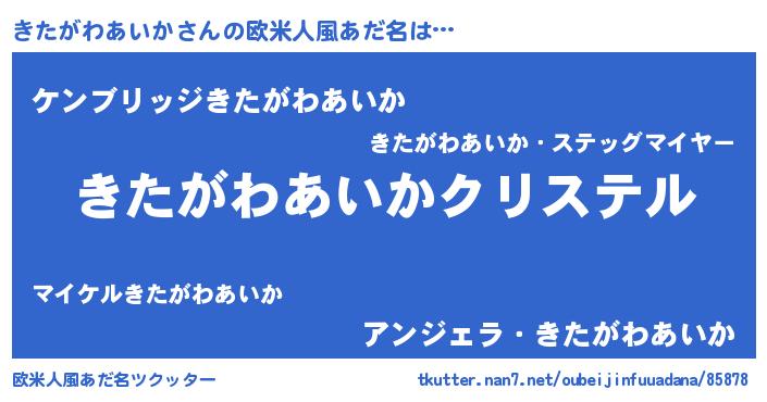 | 男性向けラノベタイトル風あだ名 | 『やはりきたがわあいかの青春ラブコメはまちがっている 』 |
