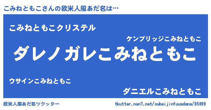 | 男性向けラノベタイトル風あだ名 | 『この素晴らしい世界にこみねともこを!』 |