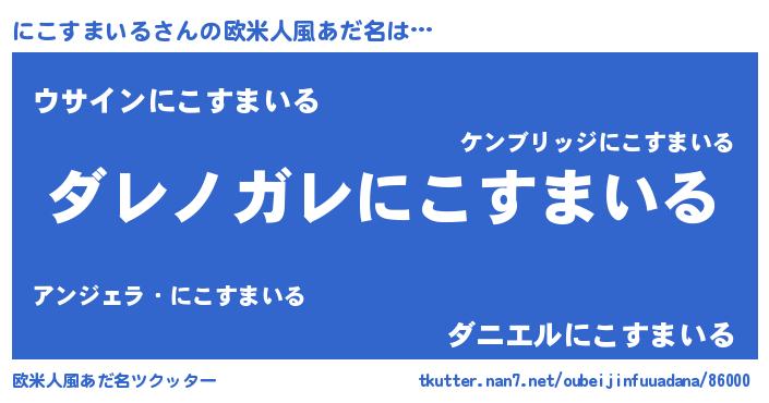 | 意味不明あだ名 | 『住所不定無職にこすまいる(98歳)』 |