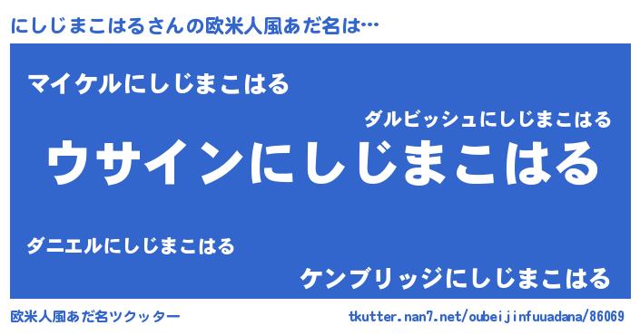 | 意味不明あだ名 | 『とにかく怪しいにしじまこはる』 |