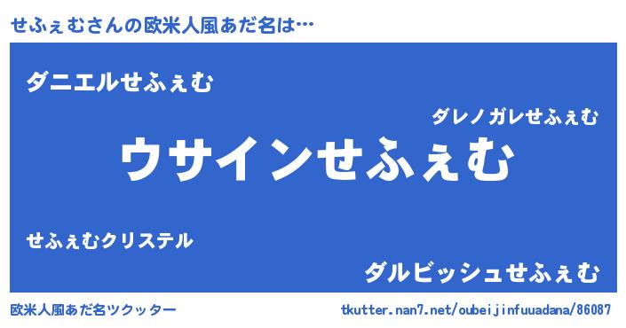 | 男性向けラノベタイトル風あだ名 | 『せふぇむの嫁は女の子じゃないと思った?』 |