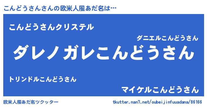 | 男性向けラノベタイトル風あだ名 | 『魔弾の王とこんどうさん』 |